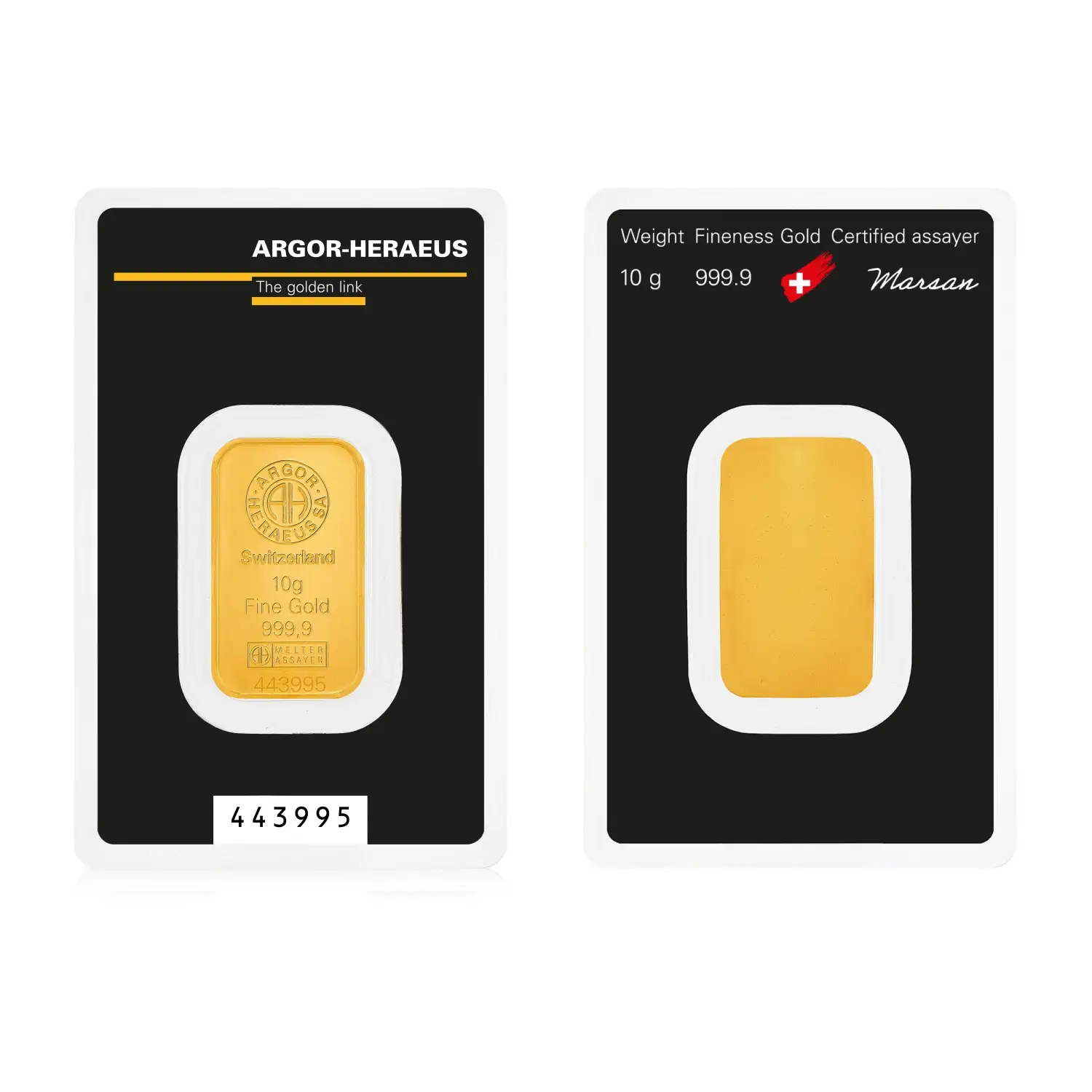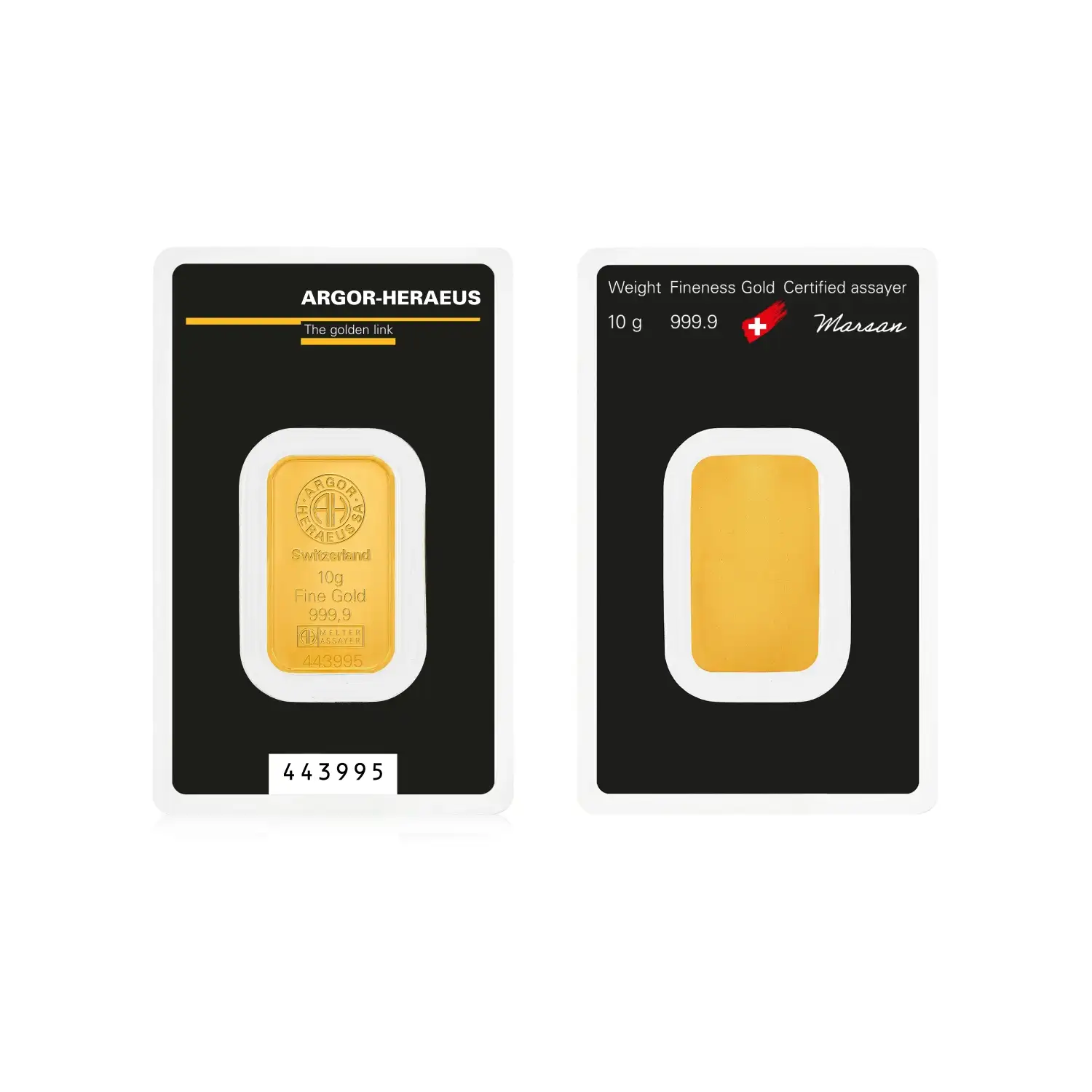 Each 10g gold bar is minted with the highest quality standards, ensuring authenticity and purity. The sleek design and precise detailing reflect the commitment to craftsmanship that Argor-Heraeus is renowned for.