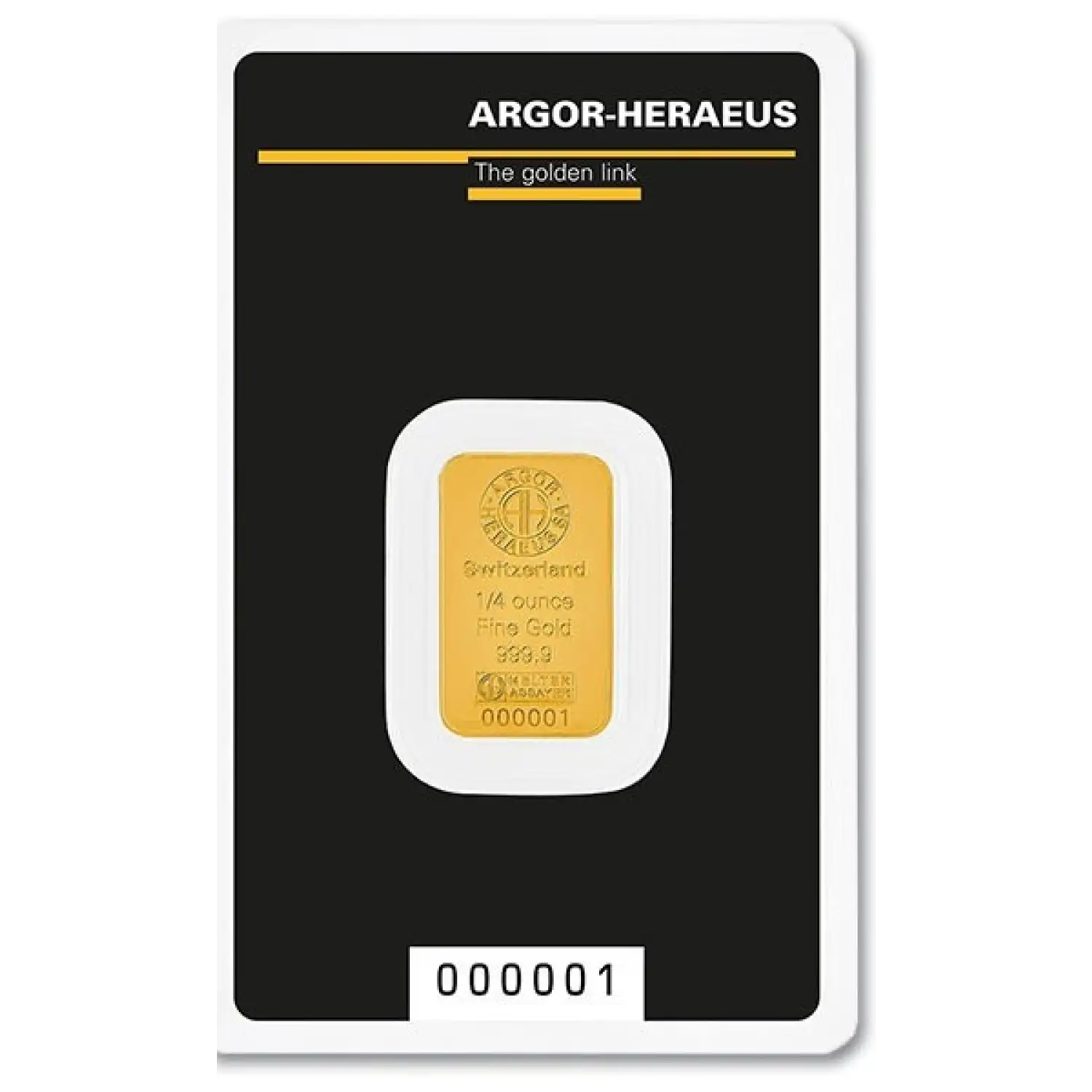 Invest in the timeless value of gold with the 0.25 Ozt Argor-Heraeus Gold Minted Bar. Crafted by the renowned Argor-Heraeus mint, this bar embodies purity and excellence, making it a valuable addition to any investor's portfolio.