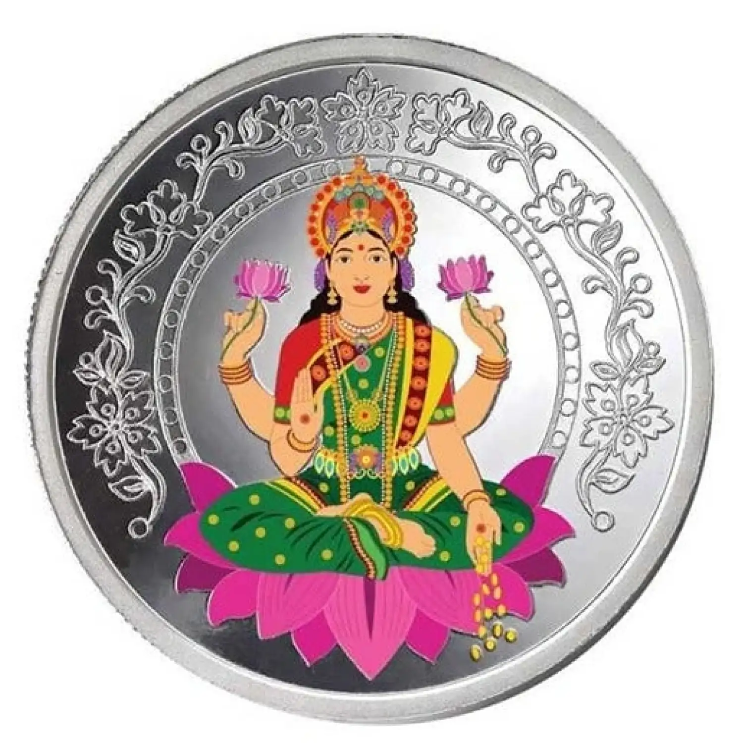 Invest in beauty, luck, and prosperity with the 10g Lakshmi Silver Color Coin today!