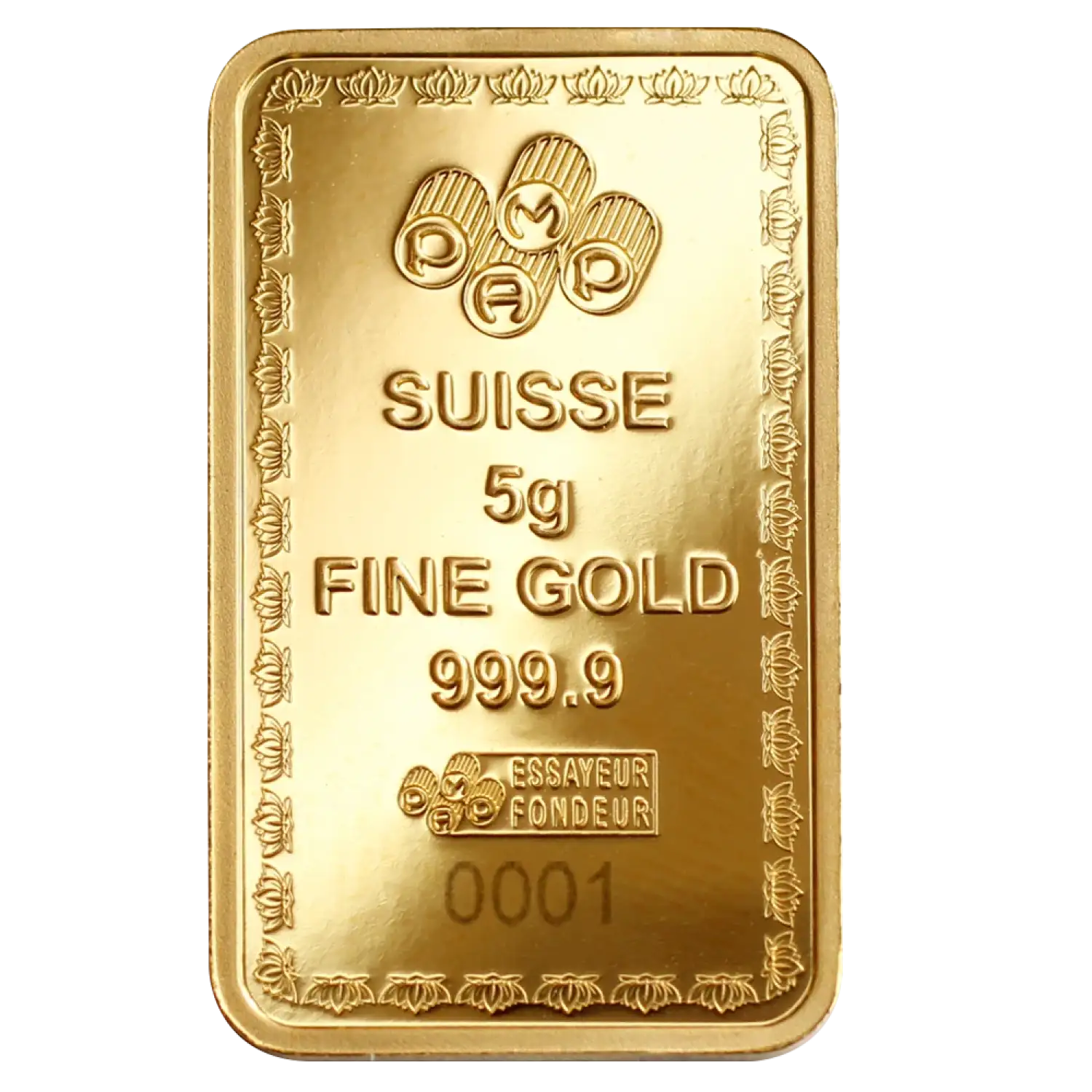 Each 5g gold bar is crafted by PAMP, a world-renowned Swiss refiner known for their exceptional quality and craftsmanship. The bar features a beautifully engraved design of Lakshmi, the Hindu goddess of wealth, fortune, and prosperity, adding an element of auspiciousness to your precious metal collection.