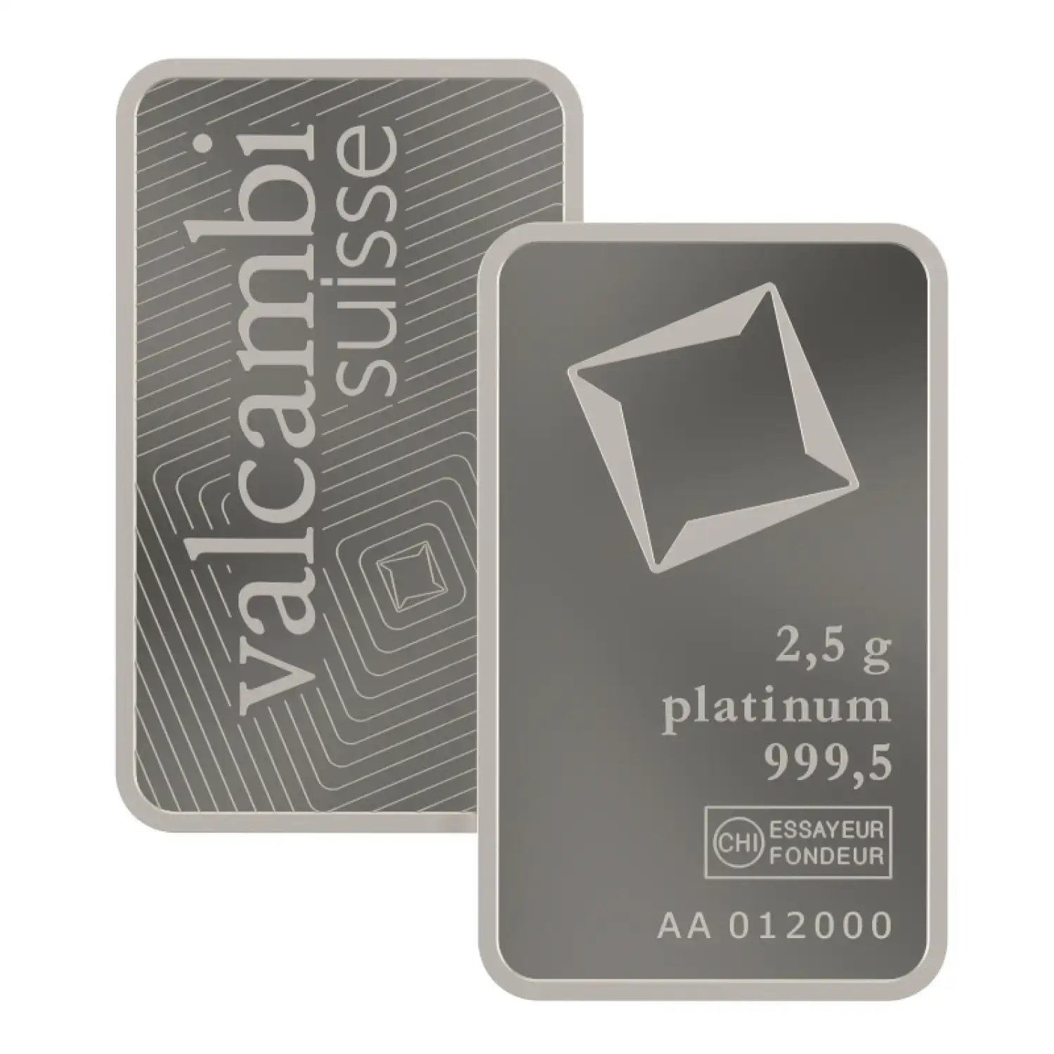 Invest in excellence with Valcambi and secure your financial future with this exceptional 2.5g platinum bar.