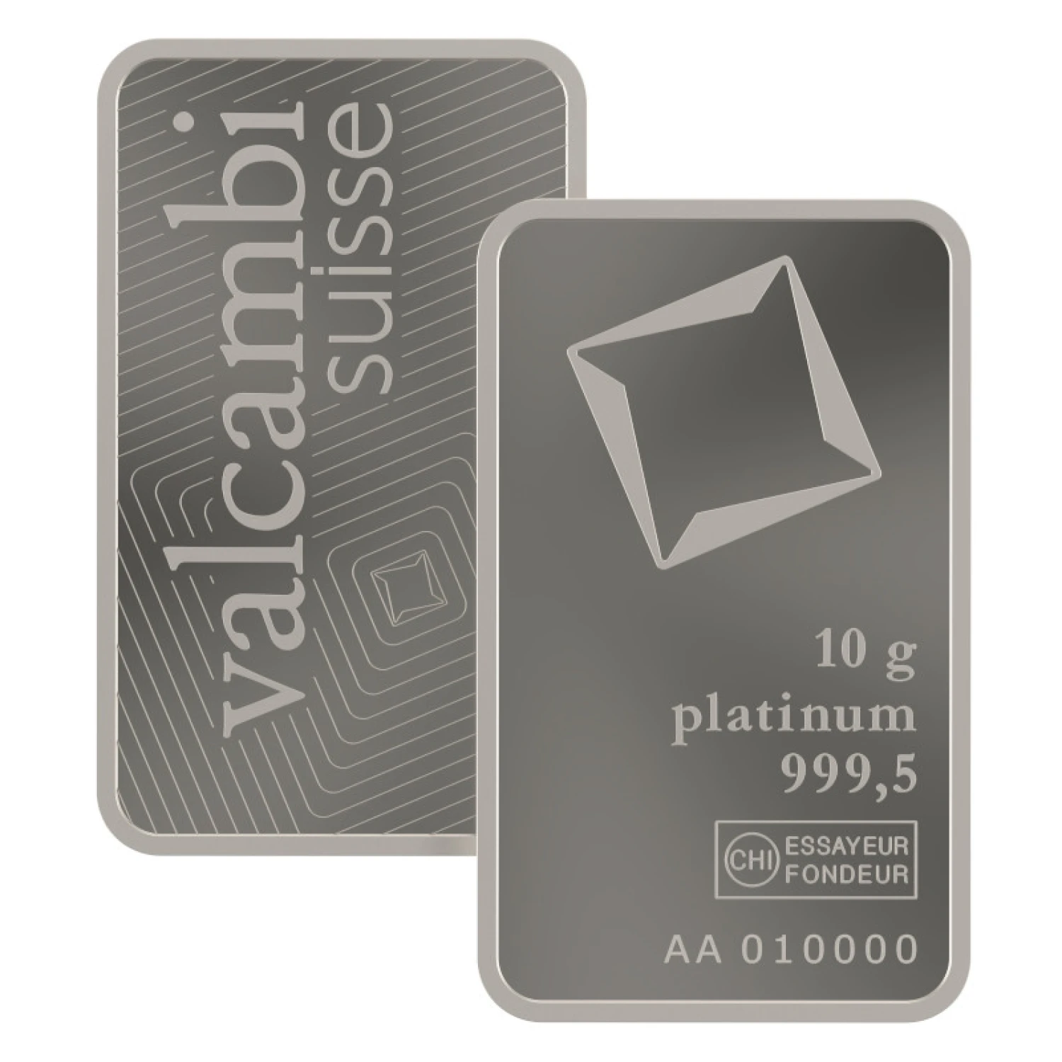 Invest in excellence with Valcambi and secure your financial future with this exceptional 10g platinum bar.