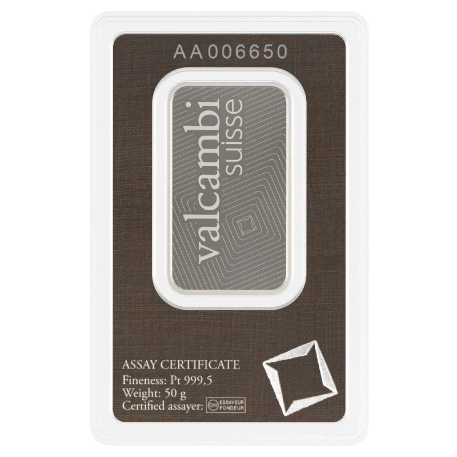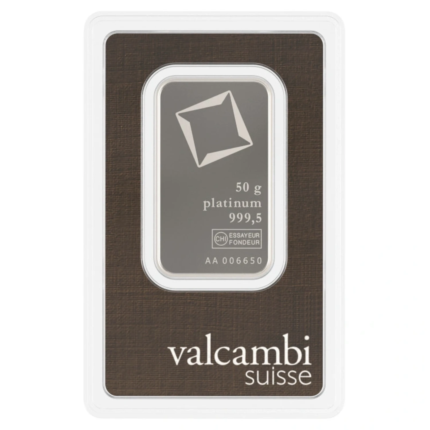 Invest in excellence with Valcambi and secure your financial future with this exceptional 50g platinum bar.