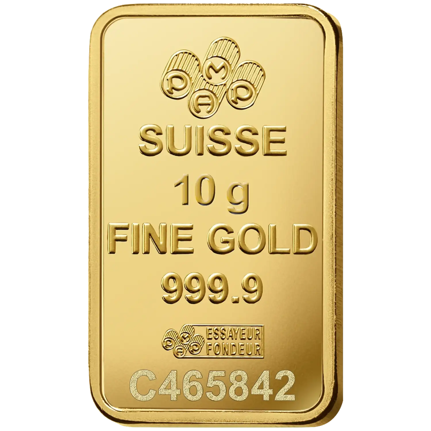 Each 10g gold bar is minted with 99.99% pure gold, making it a valuable addition to any investment portfolio or collection. The bar comes securely packaged in its assay card, guaranteeing its weight and purity. Whether you're a seasoned investor or a passionate collector, the PAMP ROSA Gold Bar is a must-have piece.