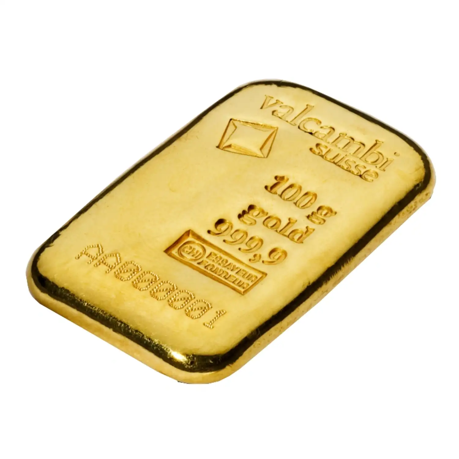 This cast gold bar features the iconic Valcambi logo along with its weight and purity inscriptions, ensuring authenticity and quality. The 100g size offers a perfect balance between affordability and liquidity, making it ideal for both seasoned investors and beginners.