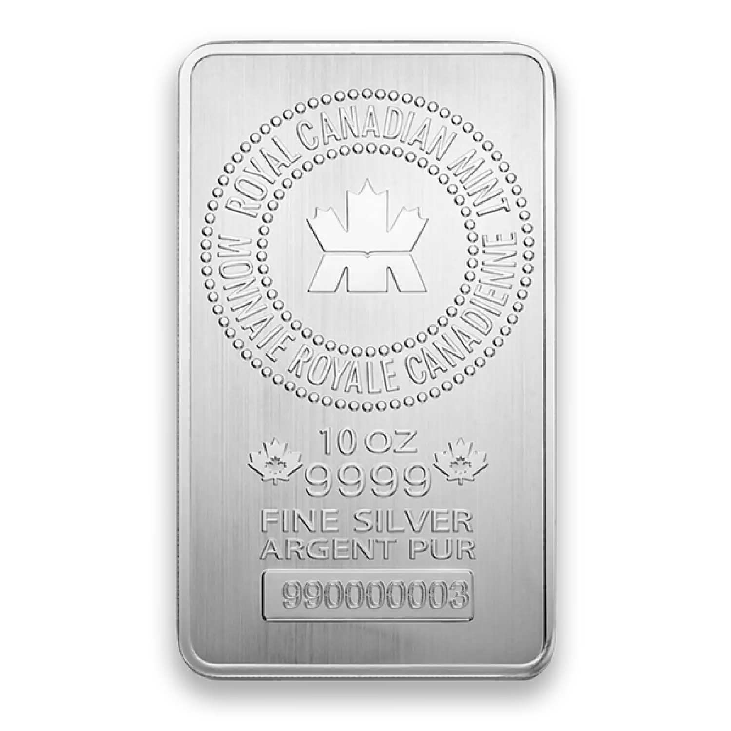 Each 10 oz Royal Canadian Mint Silver Bar weighs 10 troy ounces and is composed of .9999 fine silver. Most silver coins and bars are made to a purity of 999.