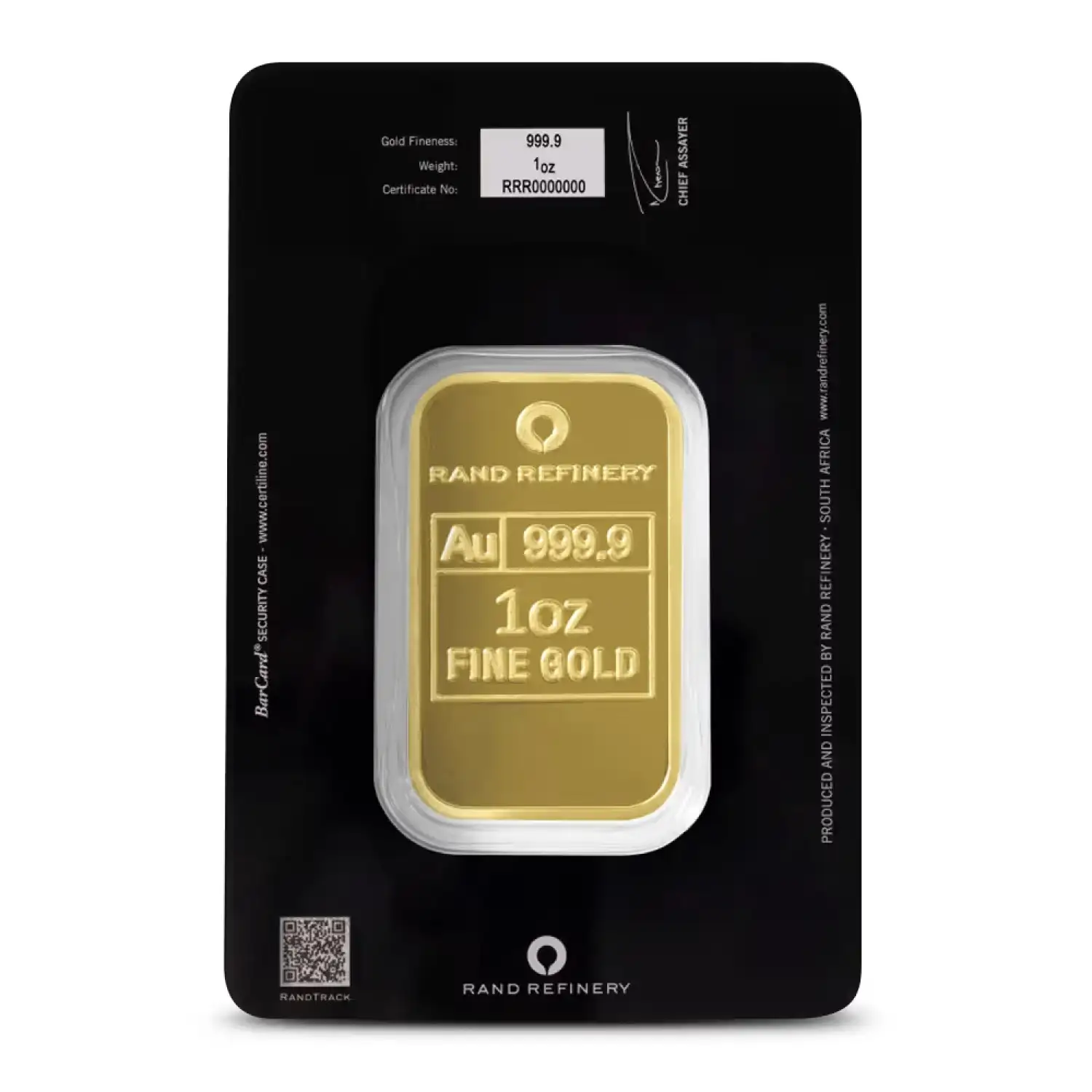 With a purity level of .9999 fine gold, this bar ensures that you are investing in high-quality, globally recognized bullion. Each bar is imprinted with the Rand Refinery logo and comes with a unique serial number for authenticity and traceability.
