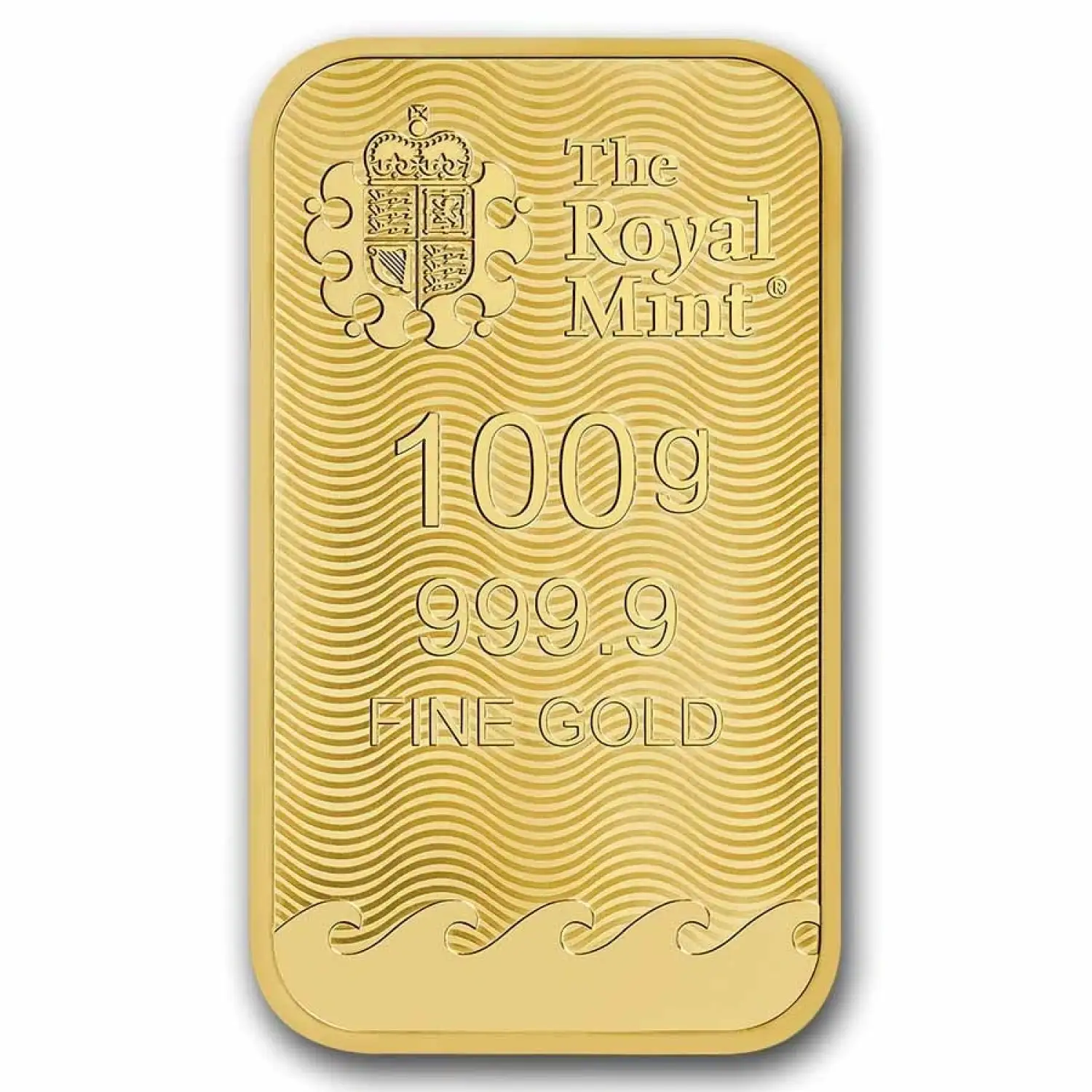 Invest in the prestigious 100g Royal Mint Gold Britannia Minted Bar, a symbol of British tradition and excellence in minting.