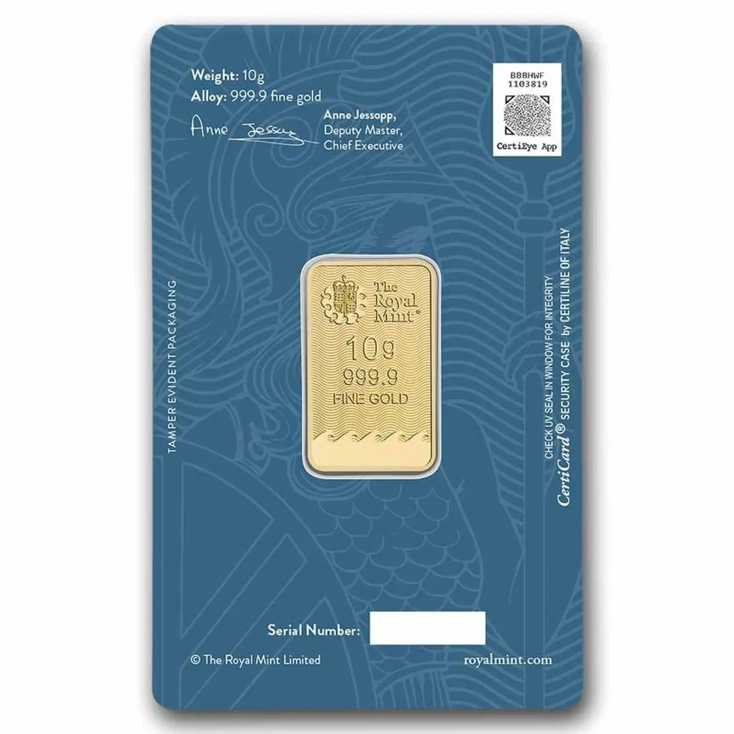 Investing in gold is a wise decision to safeguard your wealth against economic uncertainties, and with the 10g Royal Mint Gold Britannia Minted Bar, you not only secure your assets but also own a piece of British history.