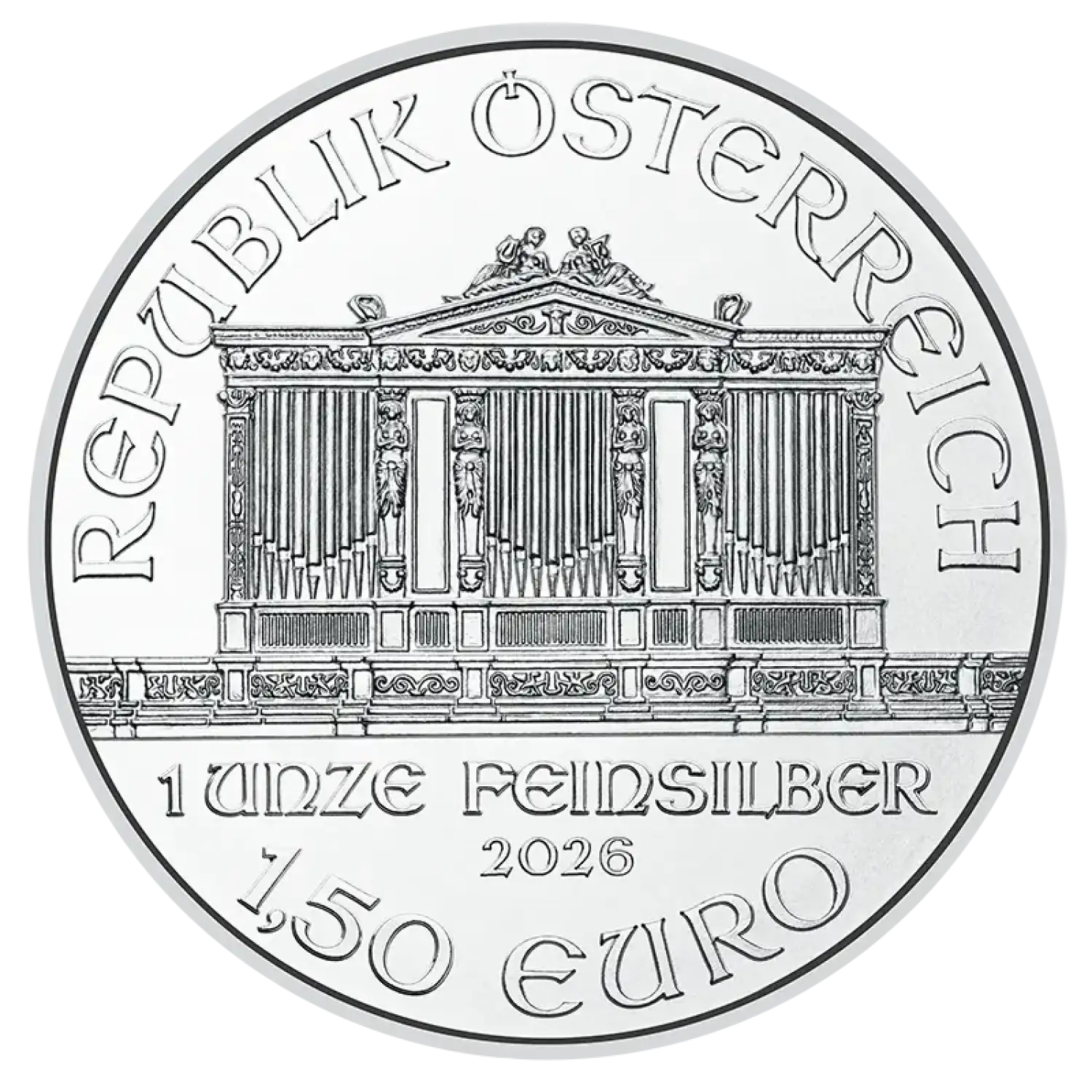 The 2026 1oz Austrian Silver Philharmonic is a striking silver coin that showcases the artistic heritage and musical legacy of Austria. Minted by the Austrian Mint, this coin is not only a piece of art but also a valuable investment, perfect for both collectors and savvy investors alike. With its impressive design and high silver content, the Silver Philharmonic has gained popularity worldwide since its first release in 2008. The 2026 edition remains consistent with the series' tradition of excellence and quality.