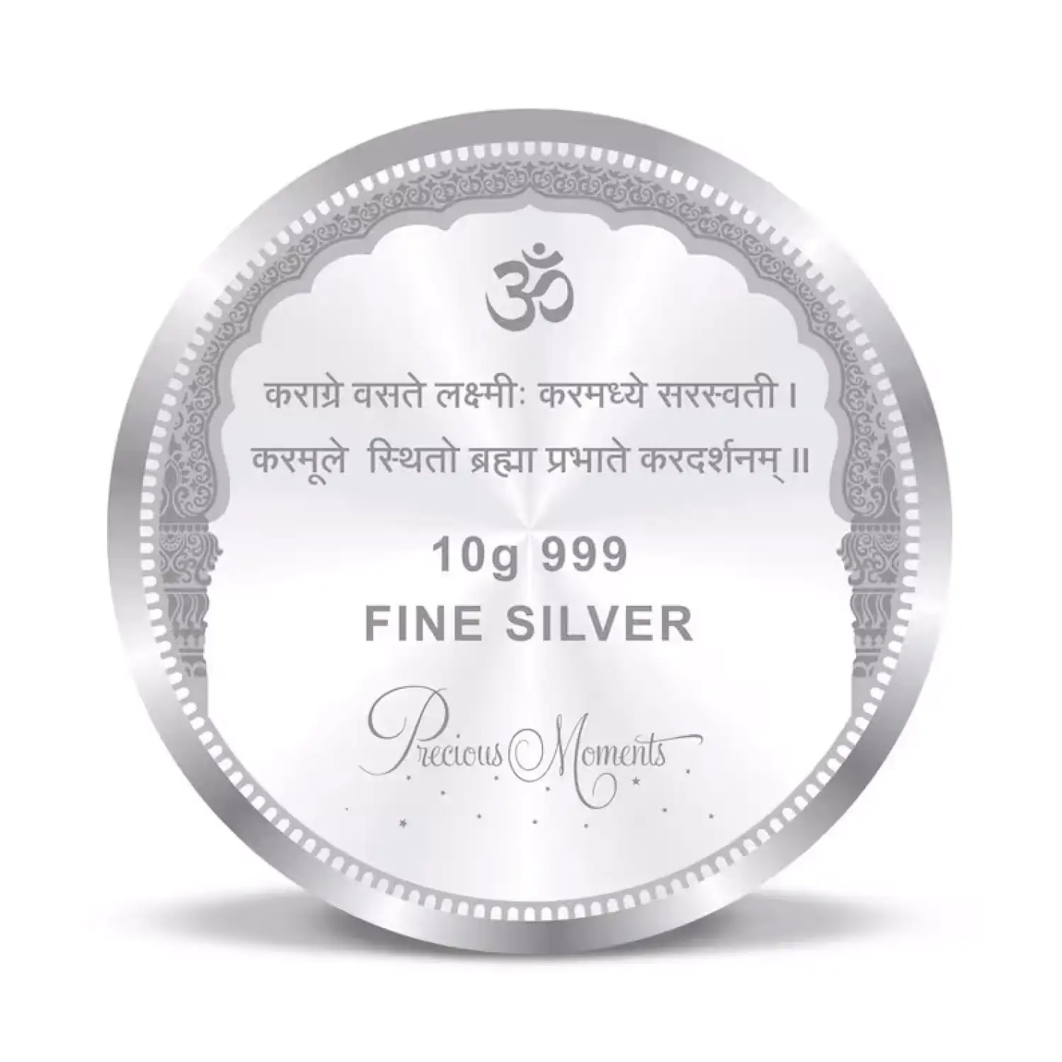 The exquisite 10g Lakshmi with Mantra Silver Color Coin is a stunning piece that beautifully combines spiritual significance with precious metal craftsmanship. This coin features a detailed image of Goddess Lakshmi, the Hindu deity of wealth and prosperity, embellished with sacred mantras to invoke blessings of abundance and fortune.