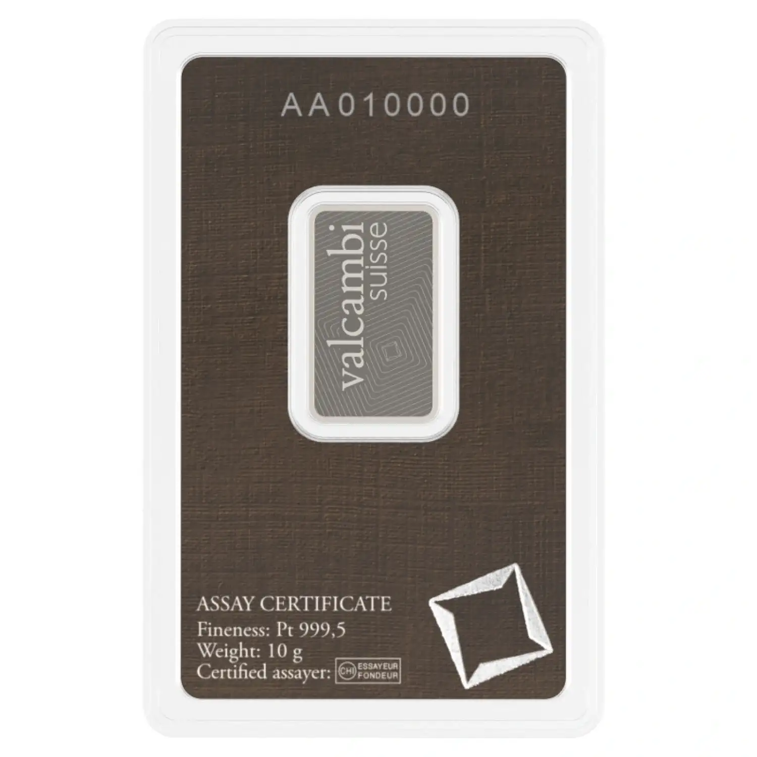 Invest in excellence with Valcambi and secure your financial future with this exceptional 10g platinum bar.