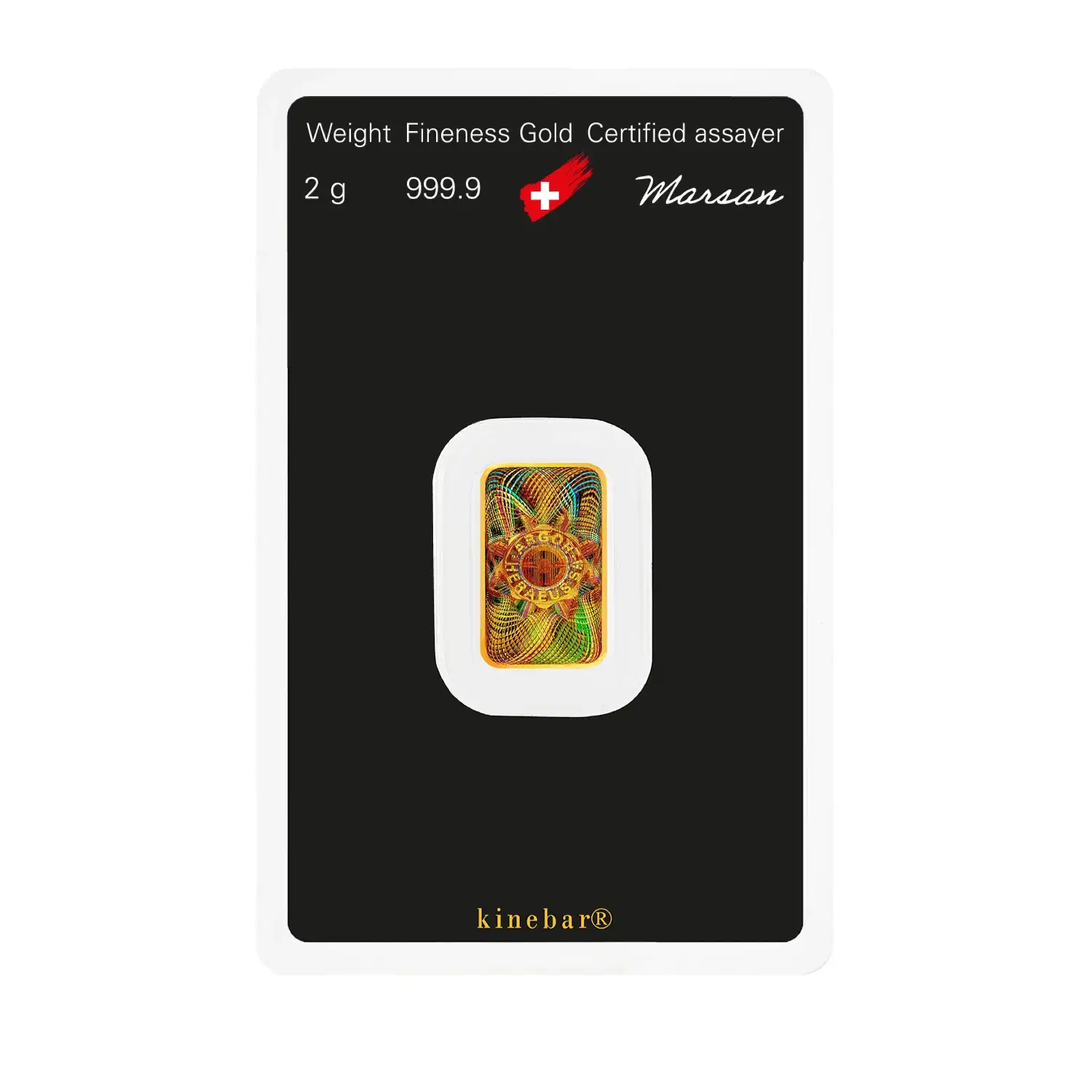 Invest in pure gold with the 2g Argor-Heraeus Gold Kinebar Minted Bar, a stunning piece that combines impeccable quality with innovative security features.