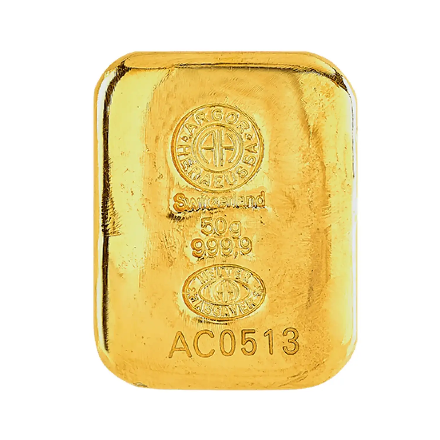 Take the first step towards securing your financial future with the 50g Argor-Heraeus Gold Cast Bar - a symbol of excellence and stability in the world of precious metals.